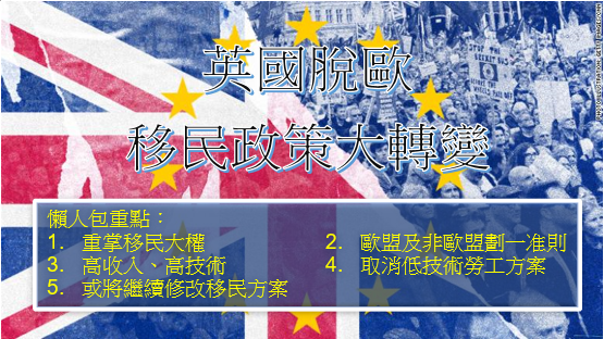 5. 英國會按勞動市場轉變將繼續修改移民方案;